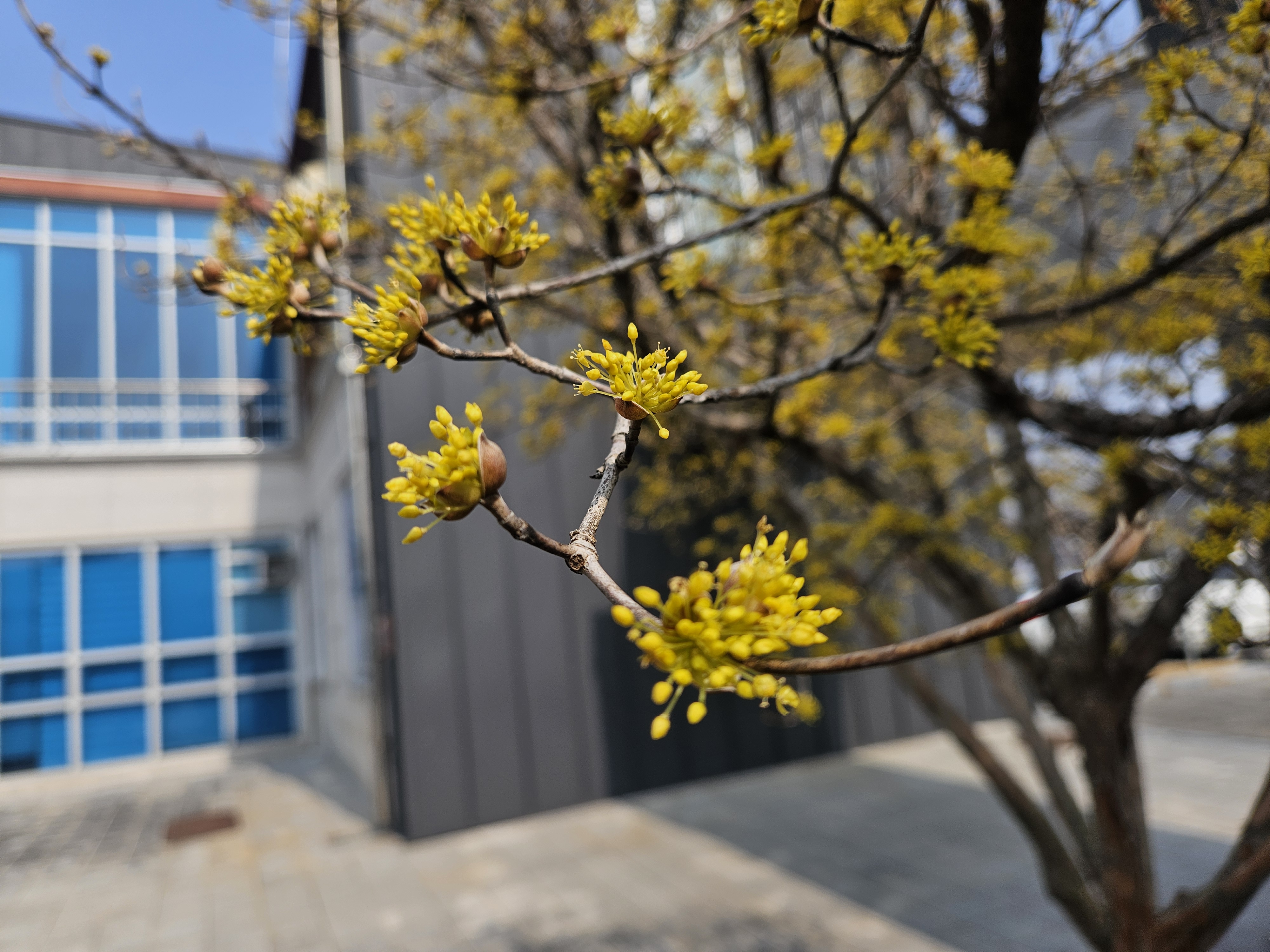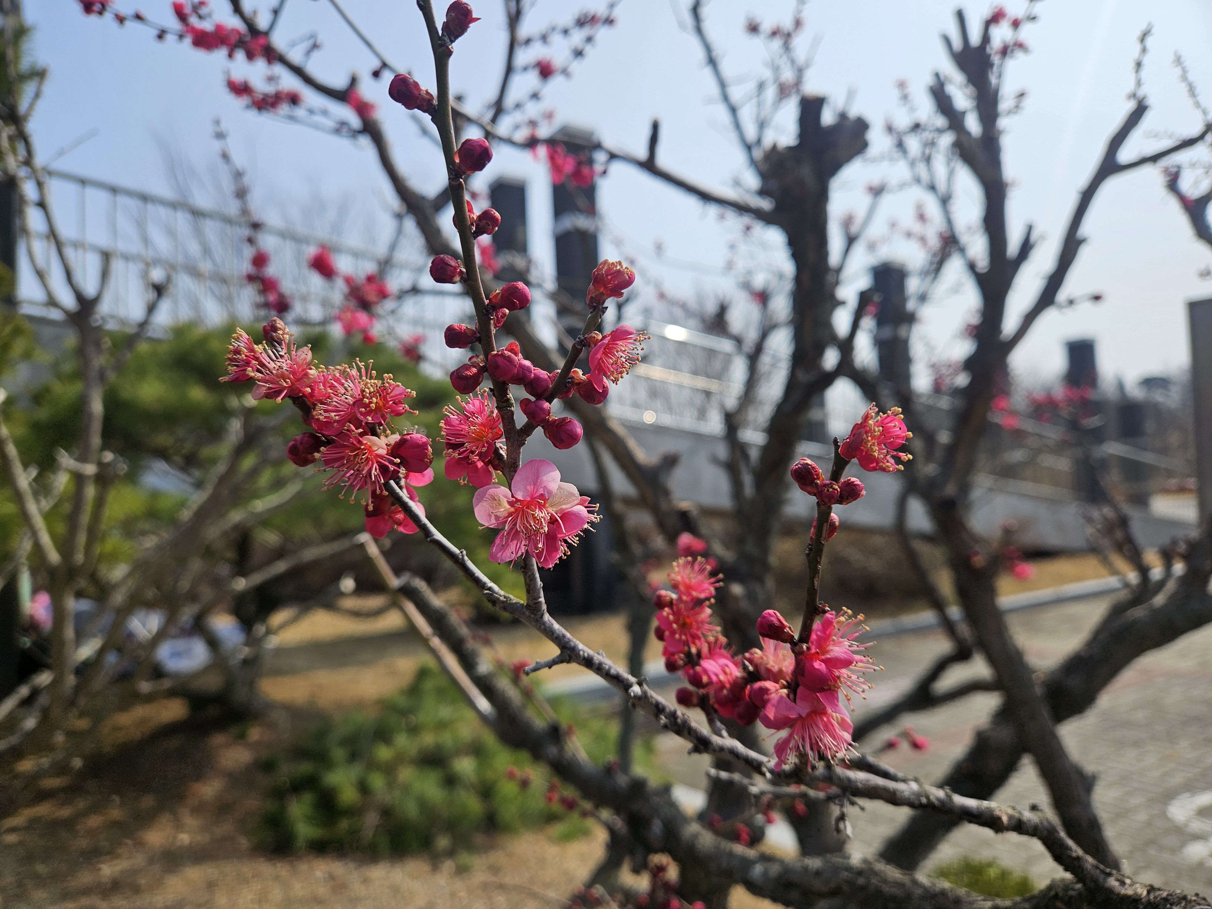 꽃들이 가지의 틈을 채우기 시작한 아침.