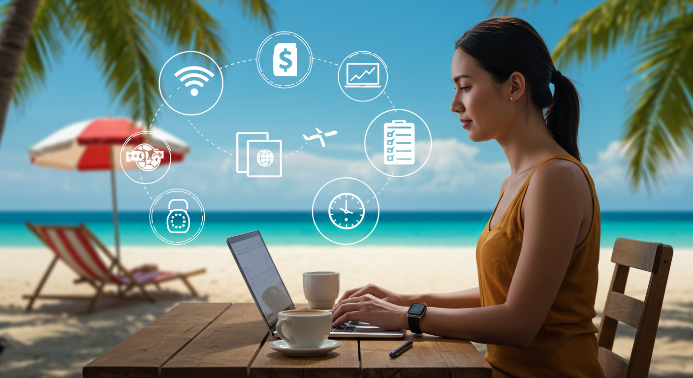 디지털 노마드, 원격 근무, 자유로운 직업, 재택근무, 노마드 라이프, 온라인 비즈니스, 해외에서 일하기, 프리랜서, 리모트 워크, 생산성 높이기